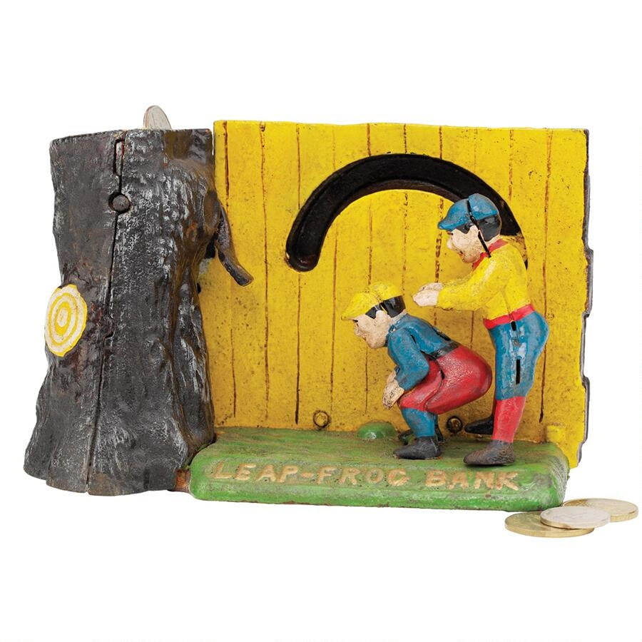 Vintage cast iron mechanical bank teddy and the bear for parts or repair c9. Description manufactured by kyser & rex. Vintage cast iron working dentist money bank book of knowledge, mechanical bank, old cast iron toys, collectible coin bank, old piggy bank. Antique j & e stevens eagle & eaglets cast iron mechanical bank toy 1883 nr. Whimsical j&e stevens 2 frogs mechanical bank: